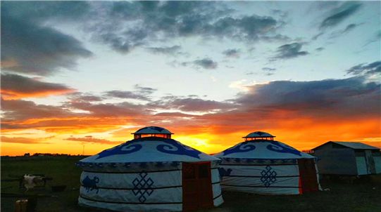 午餐后,驅(qū)車前往【油菜花基地】你知道盛夏的呼倫貝爾大草原,綠草如茵,牛羊遍野。但你不知道,在這片遼闊的土地上,也盛開(kāi)美麗的油菜花海。每年7月初到8月初,呼倫貝爾大草原上萬(wàn)畝成片的油菜花開(kāi)始盛開(kāi),猶如黃金花開(kāi)一般,美爆整個(gè)草原。沿途可尋找方便停車地點(diǎn)進(jìn)行拍照。 游完以后我們驅(qū)車趕往【黑山頭日落山】車輛抵達(dá)黑山頭鎮(zhèn),您可以徒步上山,等待著草原上那美麗日落的出現(xiàn)。一望無(wú)際的草原加之蜿蜒曲折的河流,絕美的自然景觀為日落做好極佳的鋪墊,每逢日落時(shí)分太陽(yáng)靠近草原地平線,飄蕩在草原之上的云彩被日落的光輝所渲染,此時(shí)的站在日落山之上仿佛置身金色世界,落日余暉灑在了草原濕地的曠野之上,萬(wàn)物被金色的暮光所籠罩。此時(shí)此刻無(wú)論是草原、濕地、河流紛紛被披上了一層淡淡的金色,只是這金色世界總是來(lái)的快去的也快,慢慢的金色世界轉(zhuǎn)為火紅色的世界,伴著晚霞的消散太陽(yáng)慢慢的落在了草原天際之下......夜幕降臨后,夜晚的草原亮起了點(diǎn)點(diǎn)燈光,熱情的蒙古族朋友為大家點(diǎn)起了篝火,大人、小孩、男人、女人,那場(chǎng)面頗溫暖。那熊熊烈火將人的整個(gè)情緒都會(huì)融進(jìn)草原夜色中,和牧民一起圍火而跳,會(huì)是一種全新的感受。手撕羊肉,圍火而烤,像牧民一樣大塊吃肉大碗喝酒大聲吆喝。我們可以隨著人群圍著篝火舞蹈或者叫上您的三五好友,坐在一起看星星,談人生。